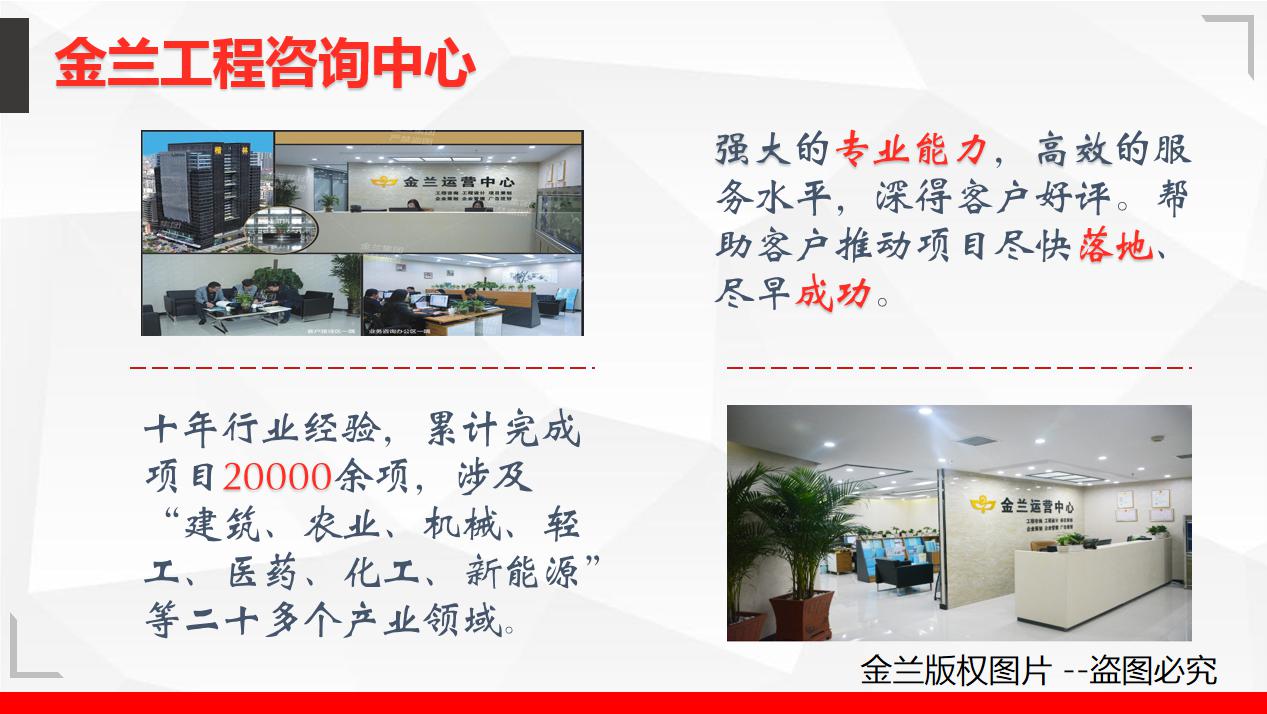 恩施州可以写可行性研究报告/可行性研究报告电话,金兰规划设计研究院,注册资本5000万元,始创于2006年9月,在职员工100余人,累计完成项目20000个以上。立足中原,辐射,专业提供工程、投标、规划设计、企业策划等一站式服务。